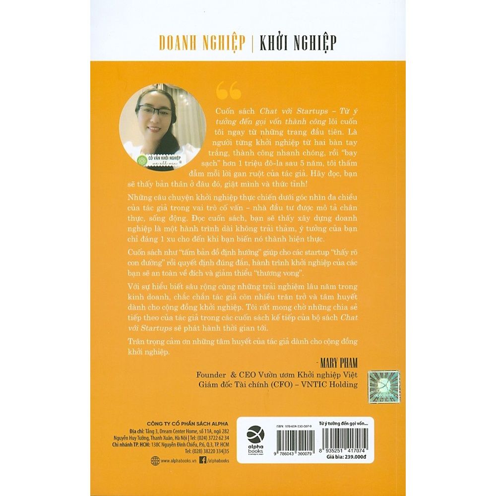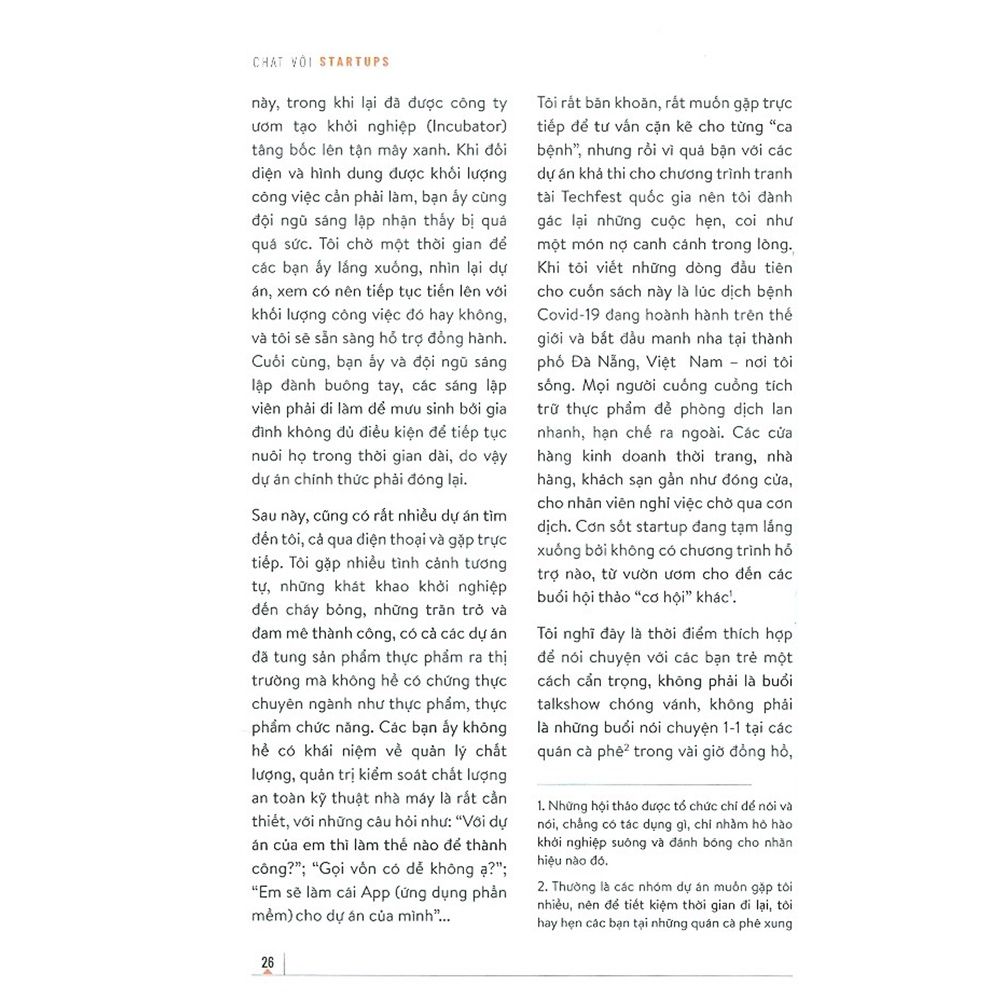 Thực tế trên về tình hình Startup tại Việt Nam đã khiến tác giả trăn trở, và viết nên cuốn Chat với Starups No1 - TỪ Ý TƯỞNG ĐẾN GỌI VỐN THÀNH CÔNG để chia sẻ bài bản, kỹ càng những kiến thức và kinh nghiệm chị chắt lọc trong hoạt động kinh doanh hơn 20 năm qua trong vai trò là giám đốc phát triển kinh doanh cấp cao, giám đốc quốc gia của các tập đoàn đa quốc gia tại Việt Nam, cố vấn nhiều dự án khởi nghiệp, chia sẻ những yêu cầu cần có của một dự án khởi nghiệp đổi mới sáng tạo với góc nhìn của một nhà đầu tư thiên thần.