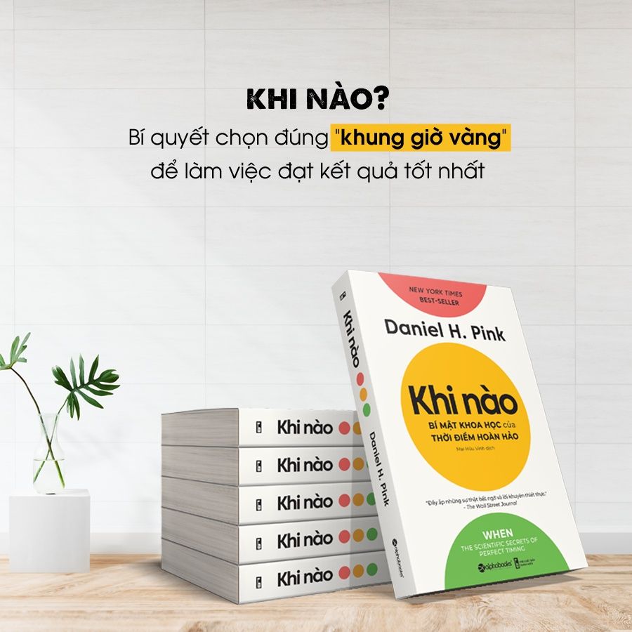 Khi Nào - Bí Mật Khoa Học Của Thời Điểm Hoàn Hảo Đây là một cuốn sách viết về thời điểm. Ai cũng biết thời điểm là quan trọng. Nhưng nó quan trọng thế nào, quan trọng ra sao và tại sao nó quan trọng thì chúng ta lại không biết. Cuộc sống là chuỗi bất tận không ngừng của quyết định. Chúng ta nên đưa ra quyết định vào thời điểm nào?; Tại sao chúng ta không nên đưa ra những quyết định quan trong vào buổi chiều?; Khi nào chúng ta nên nghỉ ngơi? – Có bao giờ bạn tự hỏi những câu hỏi như vậy? Mỗi ngày, chúng ta phải đối diện với vô vàn câu hỏi, mà mỗi câu hỏi đó đều có những ảnh hưởng vô cùng to lớn đến cuộc sống của chúng ta. Vậy, chúng ta nên xử lý chúng như thế nào? Cuốn sách tập hợp những nghiên cứu khoa học để giúp bạn tìm ra phương hướng làm việc, thời điểm lựa chọn và sắp xếp công việc hiệu quả nhất cho bản thân. Nhưng nhìn ở góc độ cá nhân, cuốn sách sẽ giúp bạn đưa ra quyết định khi nào nên bắt đầu làm việc gì đó, làm thế nào để bắt đầu lại khi bạn có khởi đầu tồi tệ và tìm ra biện pháp tránh để lặp lại những khởi đầu tồi tệ đó. Cuối mỗi chương, tác giả cũng cung cấp cuốn Sổ tay Tin tặc thời gian với các lời khuyên để bạn có thể hiện thực hóa những điều được đưa ra trong cuốn sách. Khi ấy, bạn hoàn toàn có thể làm chủ mọi thời điểm của bản thân. Thành tích của tác phẩm: - Sách bán chạy theo tờ Wall Street Journal - Sách bán chạy theo tờ Washington Post - Sách bán chạy theo tờ USA Today - Lọt vào danh sách Những cuốn sách tuyệt vời nhất năm 2018 của Amazon - Lọt vào danh sách Những cuốn sách tuyệt vời nhất năm 2018 iBooks - Bốn tháng liên tục lọt vào danh sách bán chạy trên New York Times!